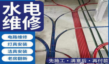1、水电安装、水电改造、水电维修、灯具安装、洁具安装、电路维修;